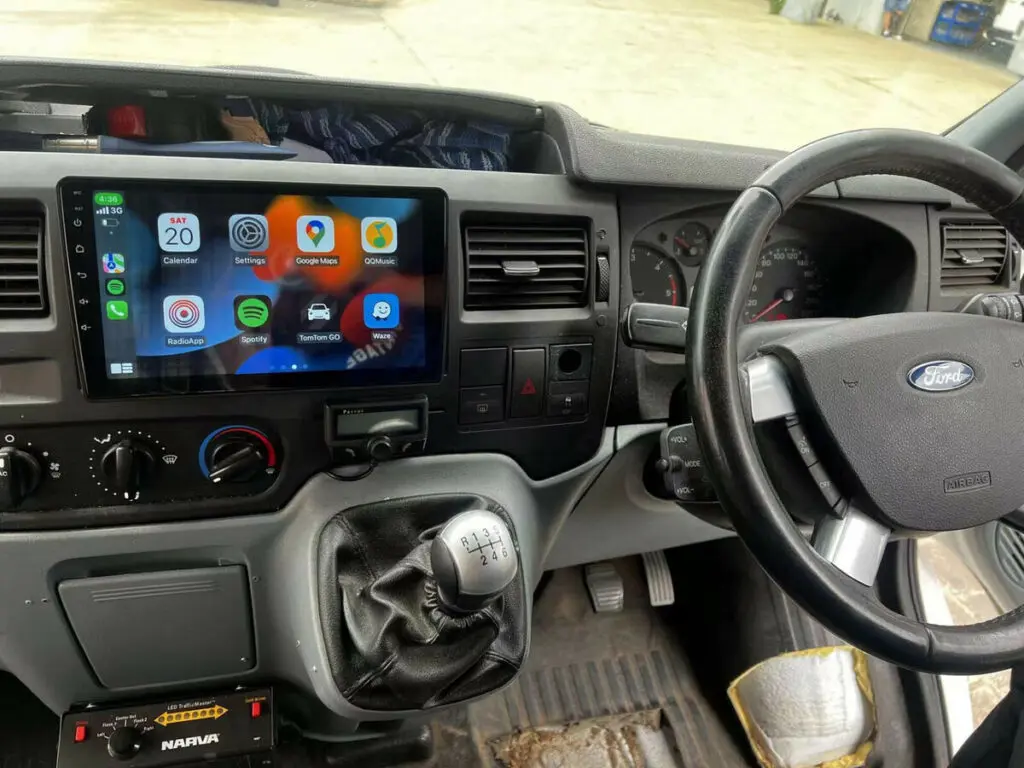 Android baseret enhed til Ford Transit med 9-tommer touchskærm, indbygget DAB+, trådkøst Apple CarPlay og Android Auto-understøttelse, autocamper naviagtion m/ 3 års gratis opdatering.