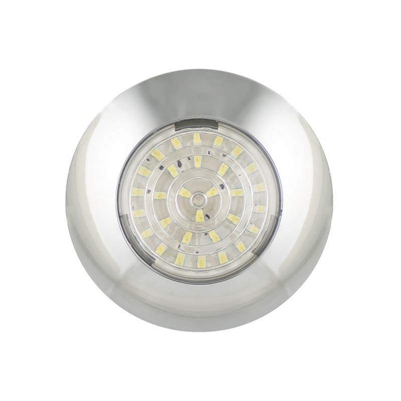 LED rund interiør lampe krom, klar linse, 12V – Ø75mm