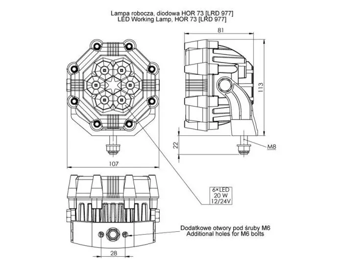LED firkantet fastmonteret arbejdslampe R23 godkendt