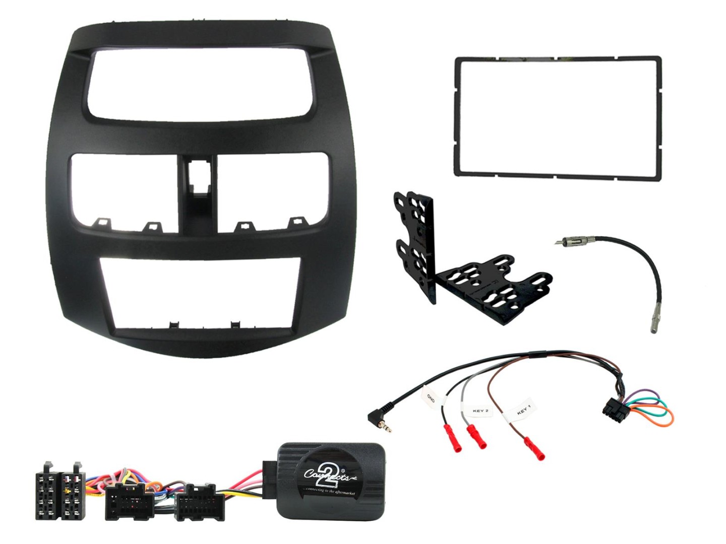 Chevrolet Beat/Spark Installation Kit. Supplied With Double DIN Fascia Kit, Resistive Steering Wheel Control Interface, Antenna Adapter & Universal Patchlead