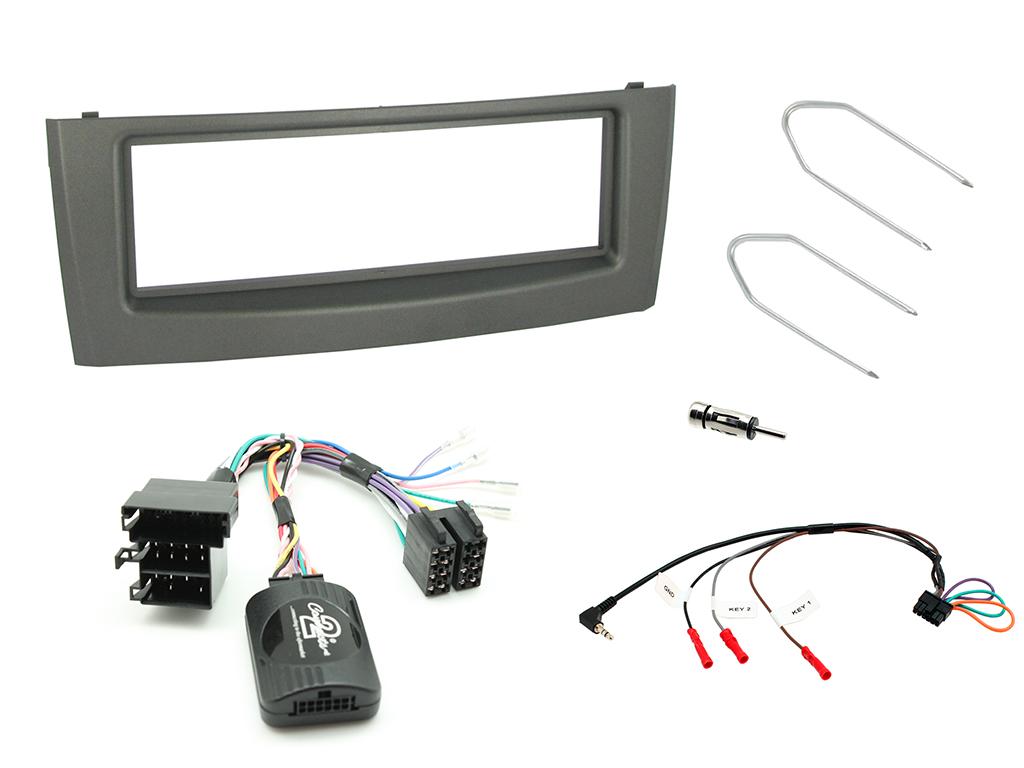Fiat Grande Punto Installation Kit. Supplied With Single DIN Anthracite Metallic Fascia, CAN-Bus Steering Wheel Control Interface, Antenna Adapter, Universal Release Keys & Universal Patchlead