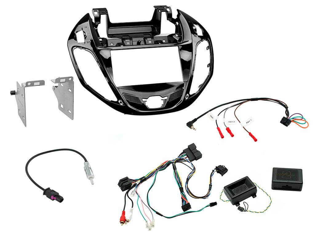 Ford B-Max Installation Kit. Supplied With Piano Black Double DIN Fascia, CAN-Bus Steering Wheel Control Interface, FAKRA Antenna Adapter & Universal Patchlead *Note – Fascia Requires OEM Ford Hazard/Door Lock Switch – Part No. 1519127