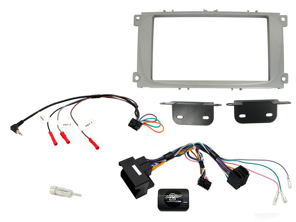 Ford Installation Kit. Supplied With Silver Double DIN Fascia, CAN-Bus Steering Wheel Control Interface, Antenna Adapter & Universal Patchlead
