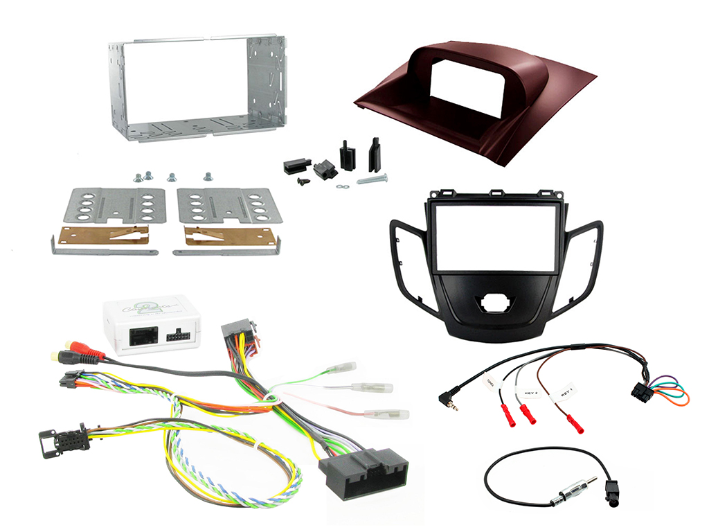 Ford Fiesta Installation Kit. Supplied With Black Double DIN Fascia Kit With Red Display Cover, CAN-Bus Steering Wheel Control Interface, Antenna Adapter & Universal Patchlead *Note – Fascia Requires OEM Ford Hazard/Door Lock Switch – Part No. 1519127