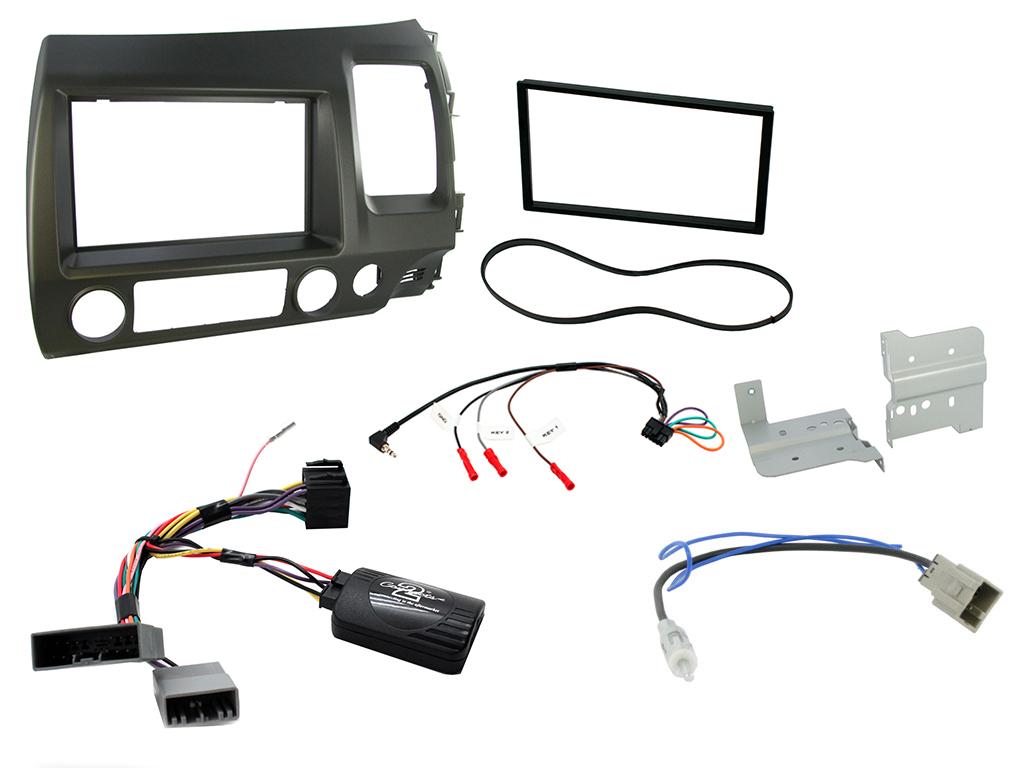 Honda Civic Installation Kit. Supplied With Black Double DIN Fascia, Resistive Steering Wheel Control Interface, Antenna Adapter & Universal Patchlead