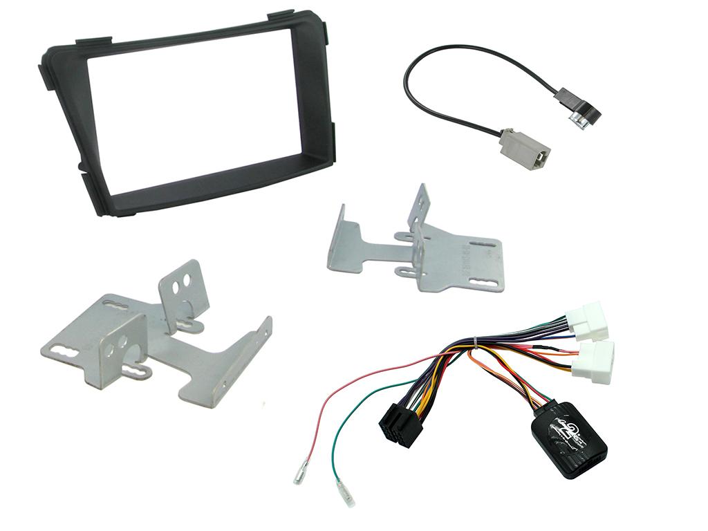 Hyundai i40 Installation Kit. Supplied With Black Double DIN Fascia, Resistive Steering Wheel Control Interface, Antenna Adapter & Universal Patchlead