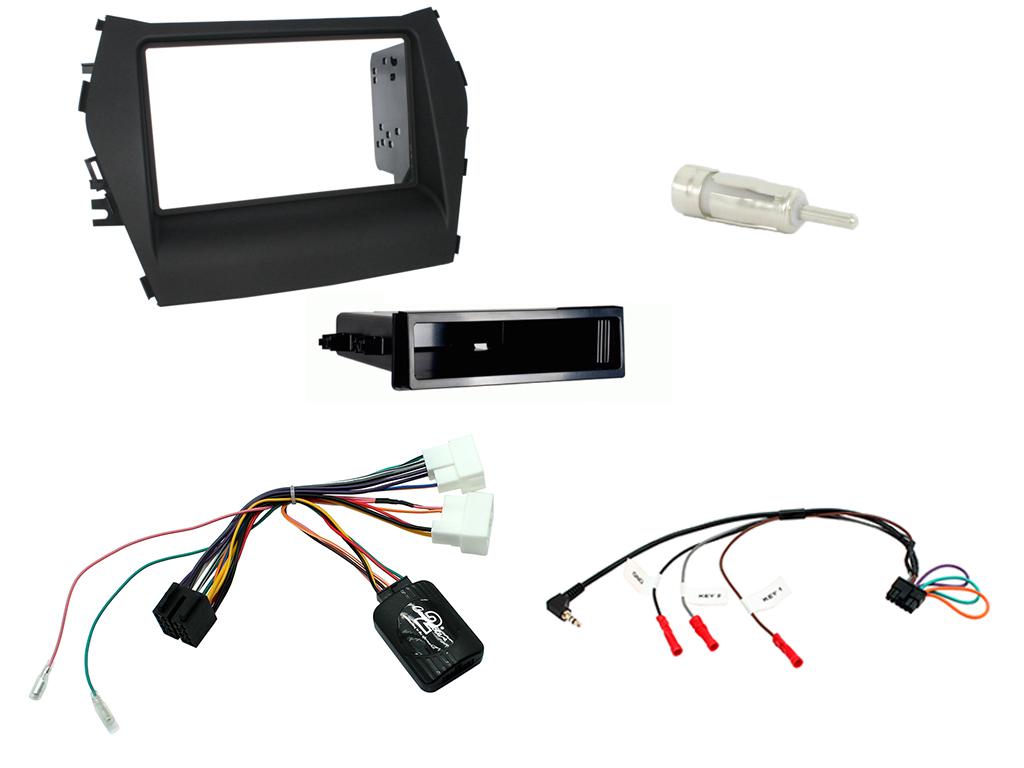 Hyundai Santa Fe Installation Kit. Supplied With Black Single DIN Fascia, Resistive Steering Wheel Control Interface, Antenna Adapter & Universal Patchlead