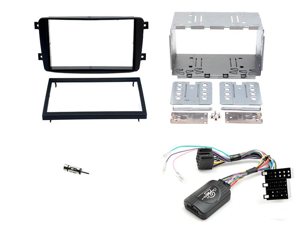 Mercedes Installation Kit. Supplied With Black Double DIN Fascia, CAN-Bus Steering Wheel Control Interface, Antenna Adapter & Universal Patchlead