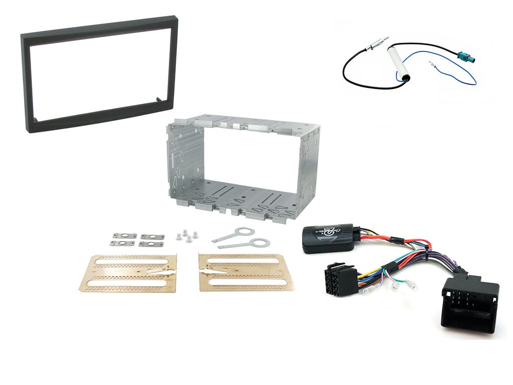 Peugeot Installation Kit. Supplied With Black Double DIN Fascia, Steering Wheel Control Interface, FAKRA Antenna Adapter & Universal Patchlead