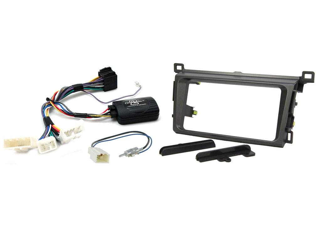 Toyota RAV4 Installation Kit. Supplied With Dark Grey Double DIN Fascia, Resistive Steering Wheel Control Interface, Antenna Adapter & Universal Patchlead