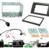 Volvo Installation Kit containing double DIN fascia, steering wheel control interface, antenna adapter and universal patch lead to create a complete fitting solution for amplified vehicles.