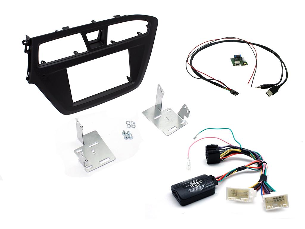 Hyundai i20 Installation Kit. Supplied With Black Double DIN Fascia, Steering Wheel Control Interface, USB/AUX Retention Interface & Universal Patchlead